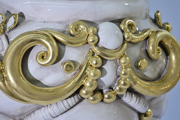 Coppia di Teste di Moro “Ghirigori Oro” realizzate interamente a mano secondo la tradizione maiolicara dei maestri ceramisti di Caltagirone.